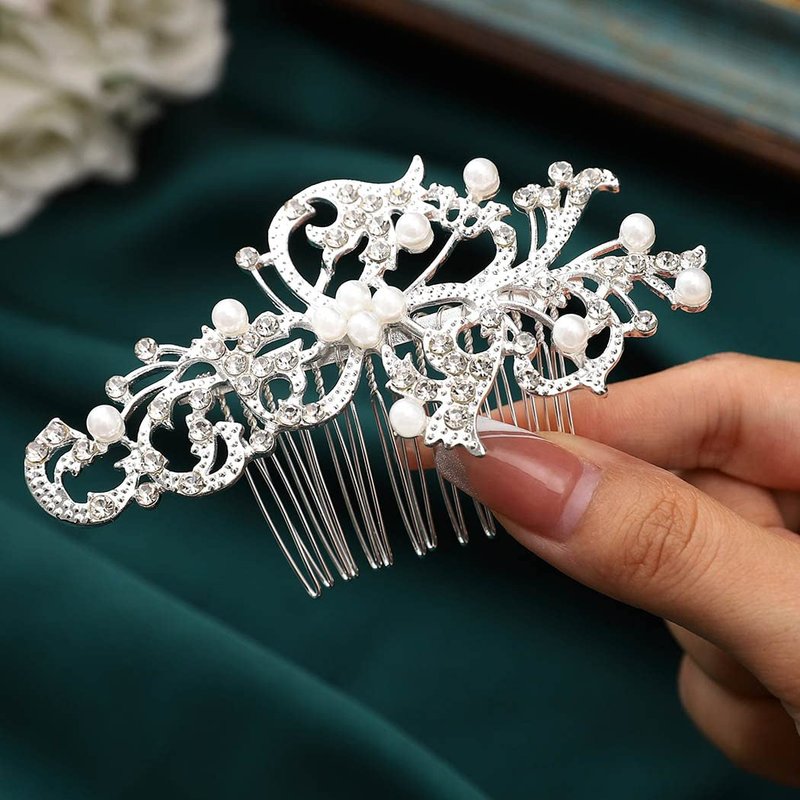 Latious Crystal Bride Wedding Hair Comb Silver Pearl Bridal Hair Clip Crystal Hair Piece Prom Hair Accessories for Women and Girls