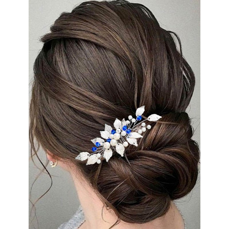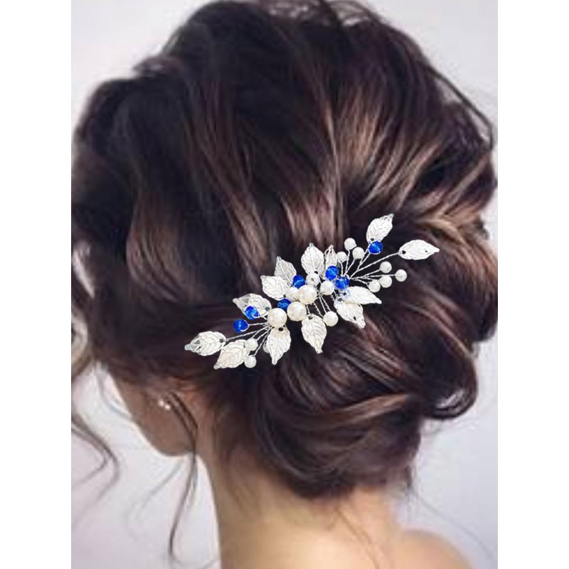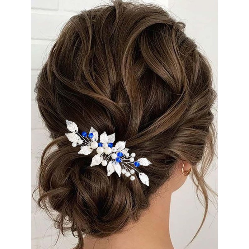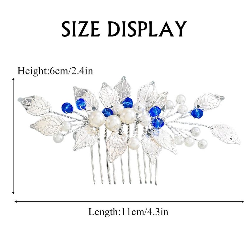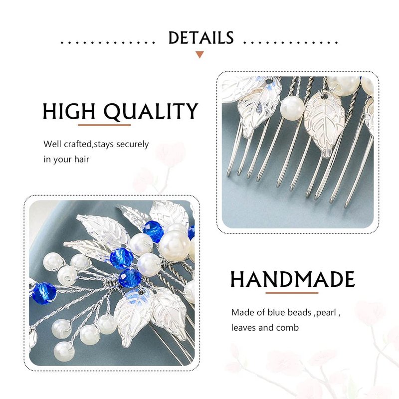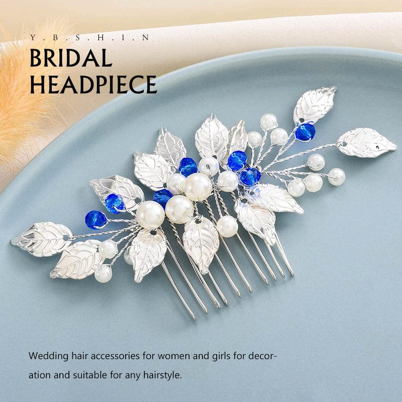 Latious Pearl Bride Wedding Hair Comb Blue Bridal Rhinestone Hair Clip Leaf Hair Piece Wedding hair accessories for Women and Girls