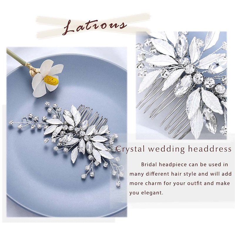 Latious Silver Bride Wedding Hair Comb Crystal Bridal Side Comb Leaf Hair Piece Rhinestone Hair Accessories for Women and Girls (Silver)
