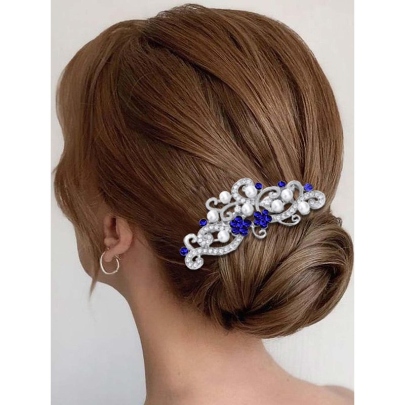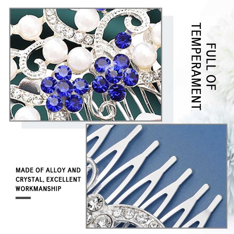 Latious Silver Bride Wedding Hair Comb Rhinestones Bridal Hair Accessories Pearl Hair Piece Decorative Hair Clip for Women and Girls (Blue)