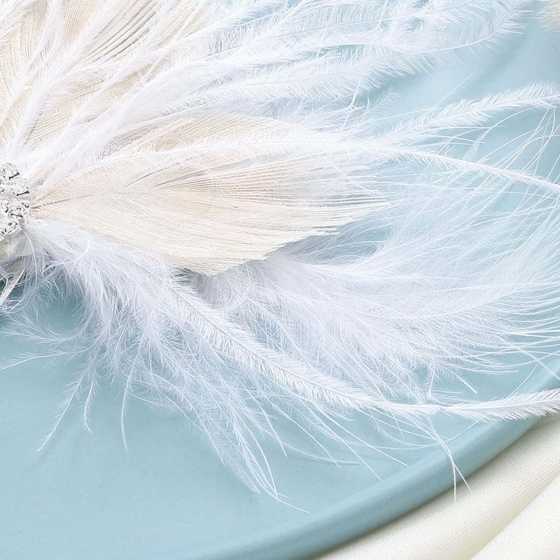 - Feather headpiece for women: Romantic pearl flower and floating rhinestones create a subtle, feminine accent for your bridal hairstyle.