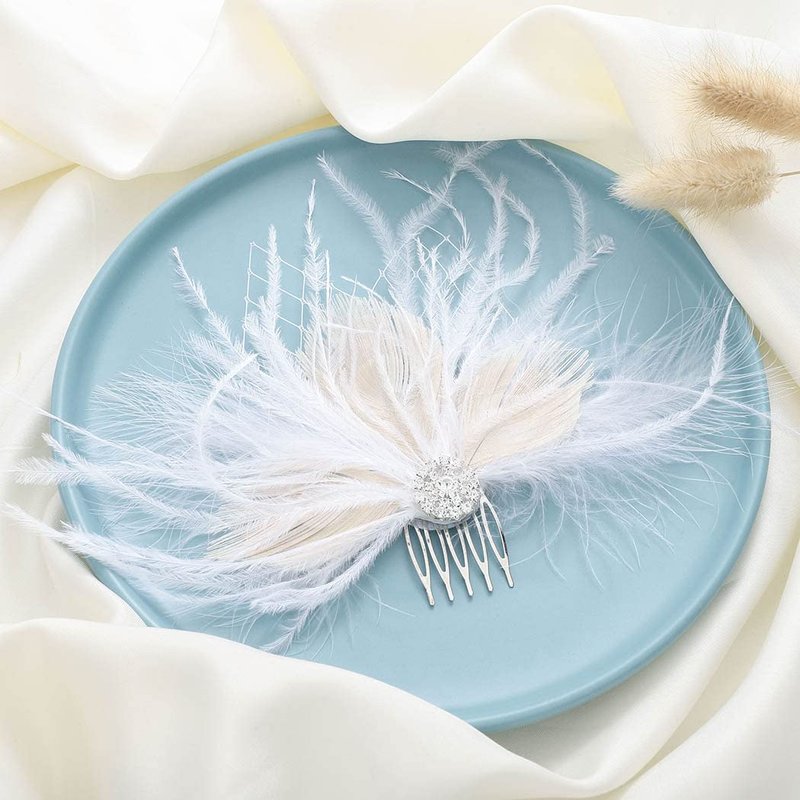 Latious Wedding Bride Flapper Feather Hair Comb White Crystal Bridal 1920s Hair Clip Fascinator Hair Accessories Prom Hair Jewelry for Women and Girls
