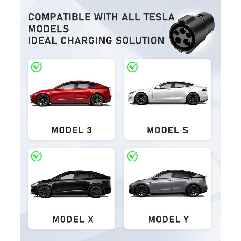 - 【Optimal charging performance】– The adapter supports high charging speeds of up to 80 amps 240V AC, operating temperature of -22°F to 122°F (-30°C to 50°C) and is compatible with all Tesla models (Model S, Model X, Model 3, and Model Y), making it a versatile charging solution for Tesla owners.