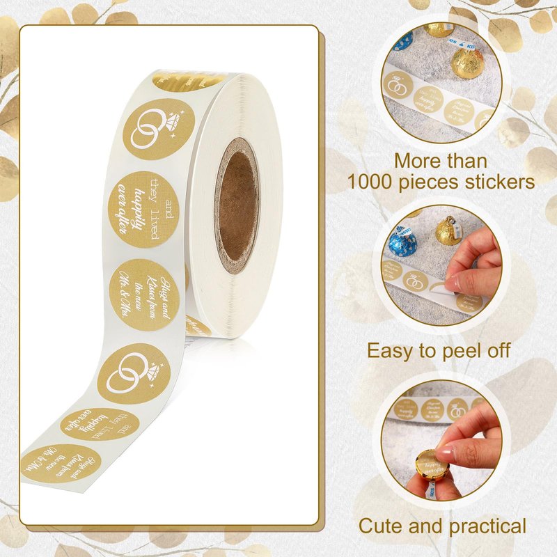 - Size and Package: 1000 wedding candy stickers are wrapped around a 3 cm diameter core and in a clean shrink wrap, each round label measuring about 0.75 inches, small and delicate, improving the decoration of candy package in detail