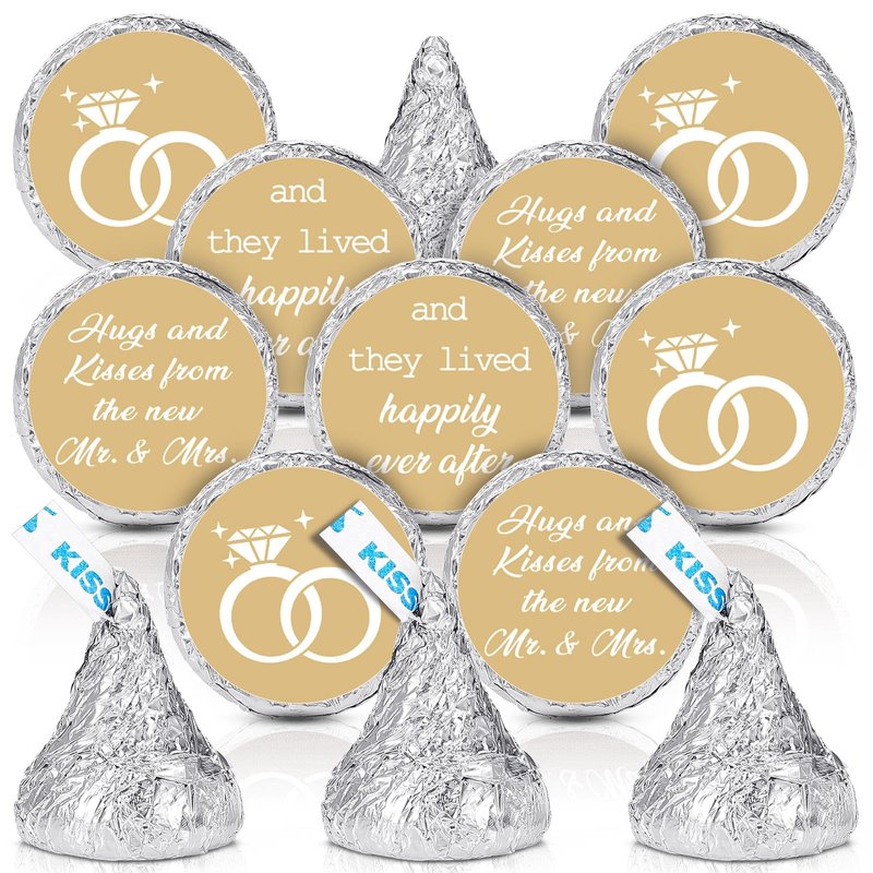- Elegant Design: these chocolate drop labels stickers feature a simple design, printed with some sweet words, such as [Hugs and Kisses from the new Mr. & Mrs], clear theme and modern style, classic and exquisite, easily decorating your party treats to enhance the elegant atmosphere