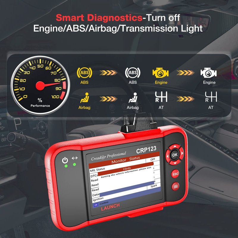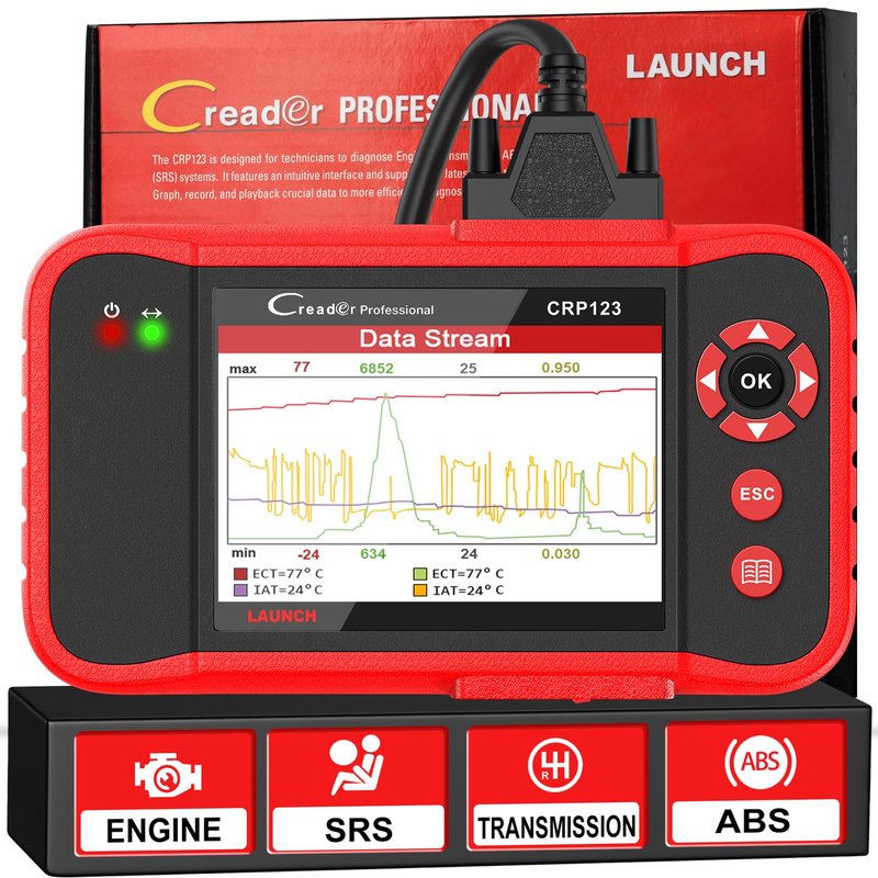 - [Worthy to Buy]----Compared to other automotive scanners priced between 50-200 dollars, the LAUNCH CRP123 OBD2 scanner has the multiple advantages. In addition to FULL OBDII diagnostic functions, it also serves as an ABS&SRS scanner, especially the transmission scanner, and an engine checker. When used as an OBD2 scanner, it can be used to check if your car is ready to pass the annual test through the I/M readiness menu, saving your money and ensuring your safety. Furthermore, it has various features, such as real-time data stream shown up, built-in DTC library, data record, playback and printing etc.