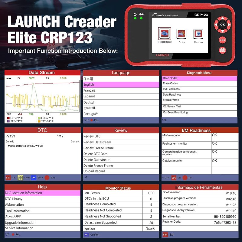 - [Lifetime Update & 5 Years Back Up]----The LAUNCH CRP123 OBD2 scanner supports lifetime free software upgrade with the newest vehicle data and functions and keeps updating. We provides 5 Years Back Up, 90 Days No-Reason-asked Return for refund. And there is a 7/24 technical support. [Please Attention] 🚩If you encounter any issues about compatibility, register or update, please don't hesitate to reach us. We will check it asap.