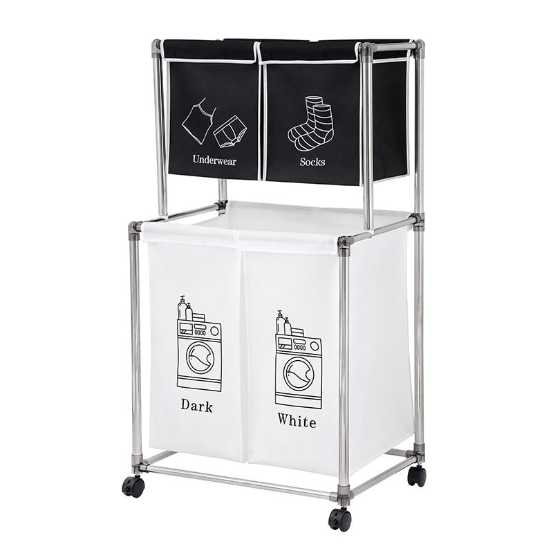 - STRONG FRAME - STQCPJ laundry sorter uses a double-layer design, which is stronger than a single-layer structure because it reduces the pressure and burden of the crossbar. The overall frame is made of hard aluminum to enhance hardness, and the non-slip design at the bottom provides the final protect of stability.
