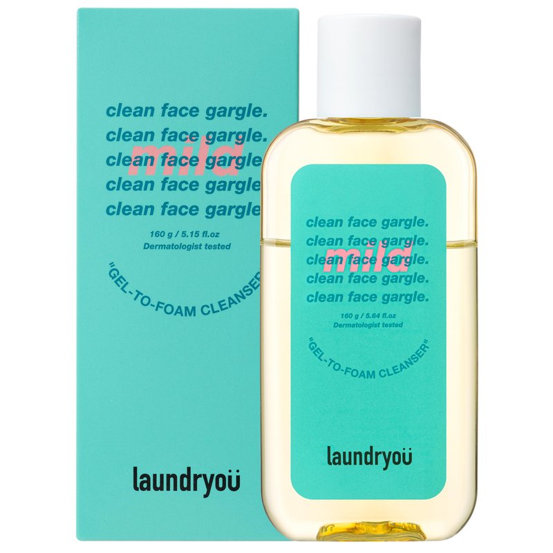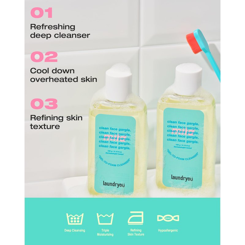LAUNDRYOU Clean Face Gargle Gel-to-Foam Cleanser Mild - Hypoallergenic Morning Face Gel Wash, Sensitive Skin Tested, with Pine & Lactobacillus Extract, Cooling & Refreshing, 5.4 fl.oz.