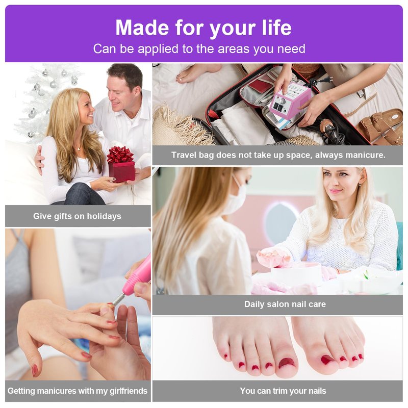 - Multifunctional use - Our electric nail file great for DIY acrylic nails, regular nail and gel nail . Used for for manicure, pedicure,, shaping, carving, cutting, routing, sanding, grinding, polishing and smoothing calluses or hardened skin on your hands and feet. It is ideal for beginners and professional nail technician.