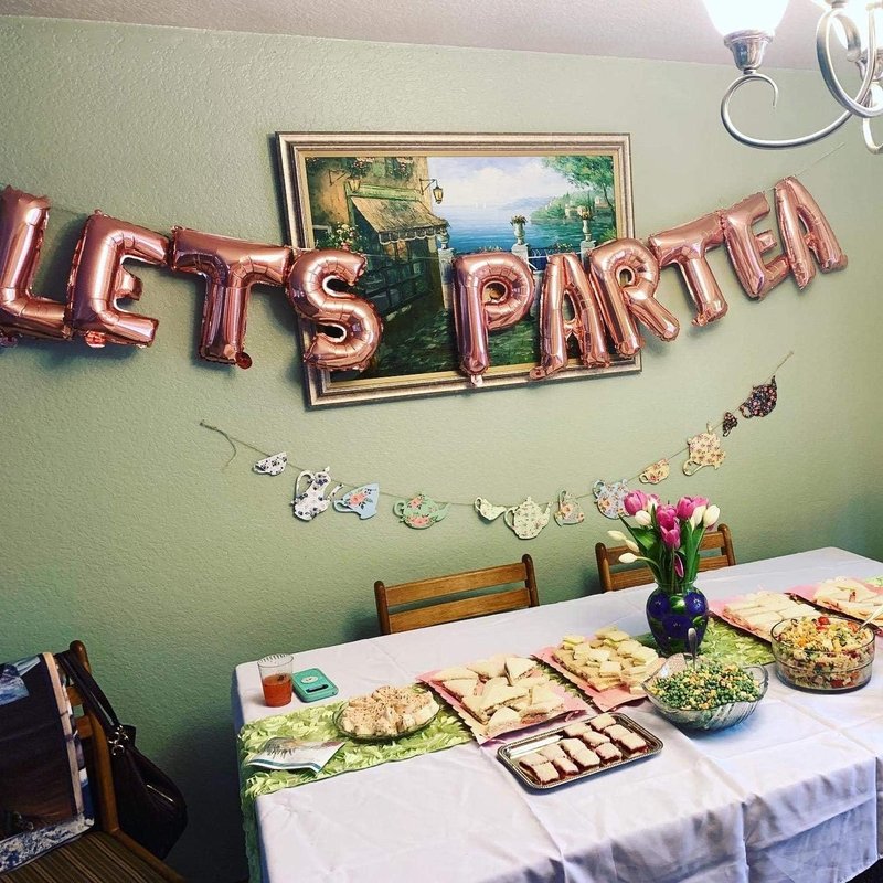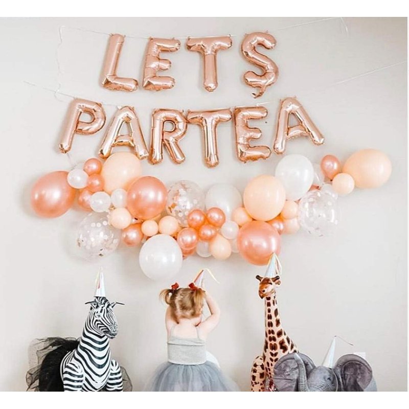 - TEA TIME! Have a sweet tea time with this Blush Balloon Garland. Perfect for any Tea for Two or Bride to Be celebration!