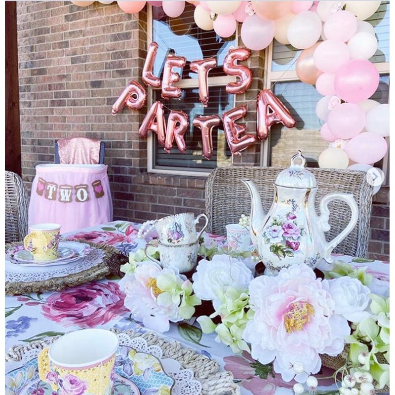 LaVenty LET'S PAR TEA Balloons Tea Party Birthday Banner Tea Party Decorations Lets Par-Tea Party Decor Par Tea Baby Shower Par Tea First Birthday Decoration Flower Garland (Floral Banner)