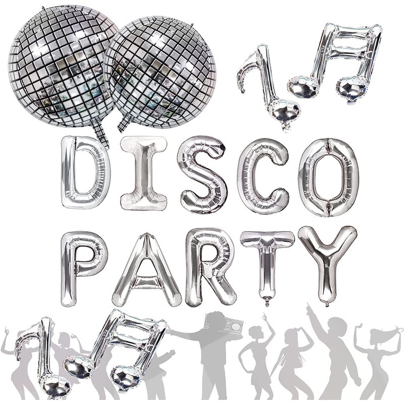 - PACKAGE INCLUDED: 1 x 16 inch “DISCO PARTY” Balloons, 2 x Disco Ball Balloons, 2 x Music Notes Balloons.