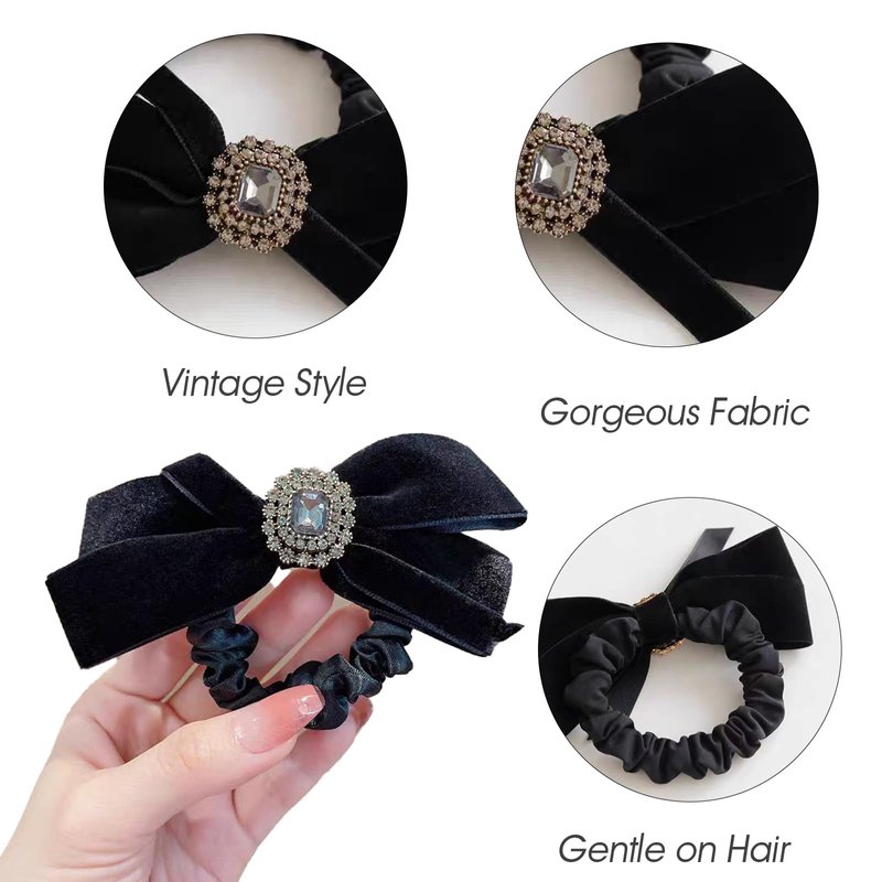 - BOW TIES DESIGN: Adorned with charming bow knots and retro imitation gemstones, adding a vintage and elegant touch to any hairstyle. The hair scrunchies is perfect for both casual and formal occasions, making your look more elegant,beautiful and attractive.
