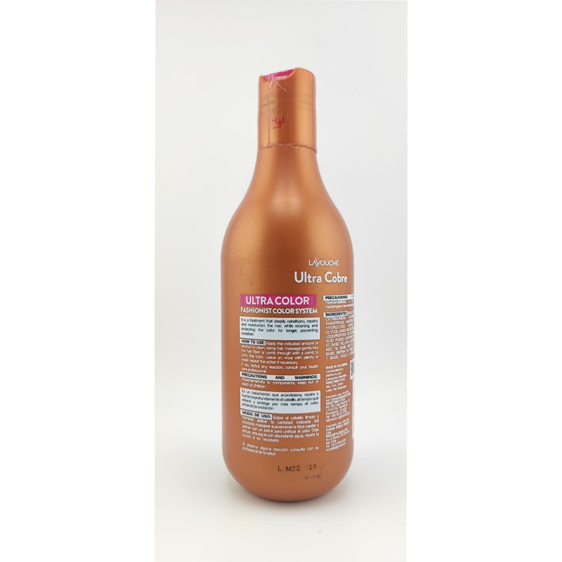 Lavouché conditioning treatment repairs and deeply moisturizes the hair while keeping the color in your hair longer. USE: Moisten the hair well, apply a small amount on the palm of the hand and gently massage the scalp. rinse with plenty of water. Repeat the action if necessary. Lavouché tratamiento acondiciona repara y humecta profundamente el cabello mientras mantiene durante más tiempo el color en tu cabello. USO: Humedecer bien el cabello aplicar una pequeña cantidad sobre la palma de la mano y masajear suavemente el cuero cabelludo. enjuague con abundante agua. Repetir las acción si es necesario.
