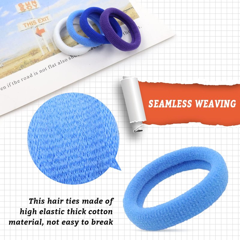 - [Wide & Thick Hair Ties]: The wide elastic terry cloth seamless hair tie is wide than ordinary elastics hair ties, they are completely snag-free, the soft wide knit design makes it no crease and painless after being used a long time on your hair.