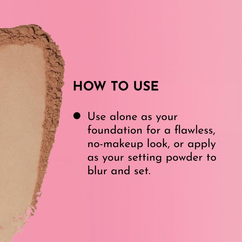 - How to Use: Apply the powder alone for a smooth, flawless, no-makeup look, or use it as a setting powder to blur and set your makeup. For fuller coverage, apply with the included sponge. Alternatively, use the plush end of our Multi-Use Powder Brush for all-over blurring and perfecting, and switch to the dense end for precision application around the eyes, nose, and mouth.