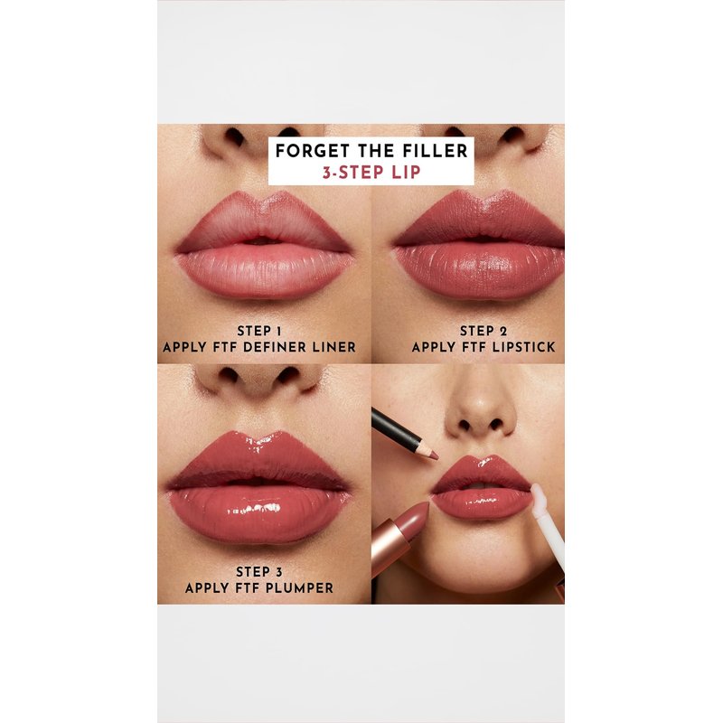 - How to use: After prepping lips with Forget the Filler Overnight Lip Mask, apply Forget the Filler Lip Plumping Line-Smoothing Lipstick for a plump, smooth, and pigment rich look. After applying Forget the Filler Lip Plumping Line-Smoothing Lipstick, apply Forget the Filler Lip Plumping Line-Smoothing Gloss for extra hydration and a high shine finish