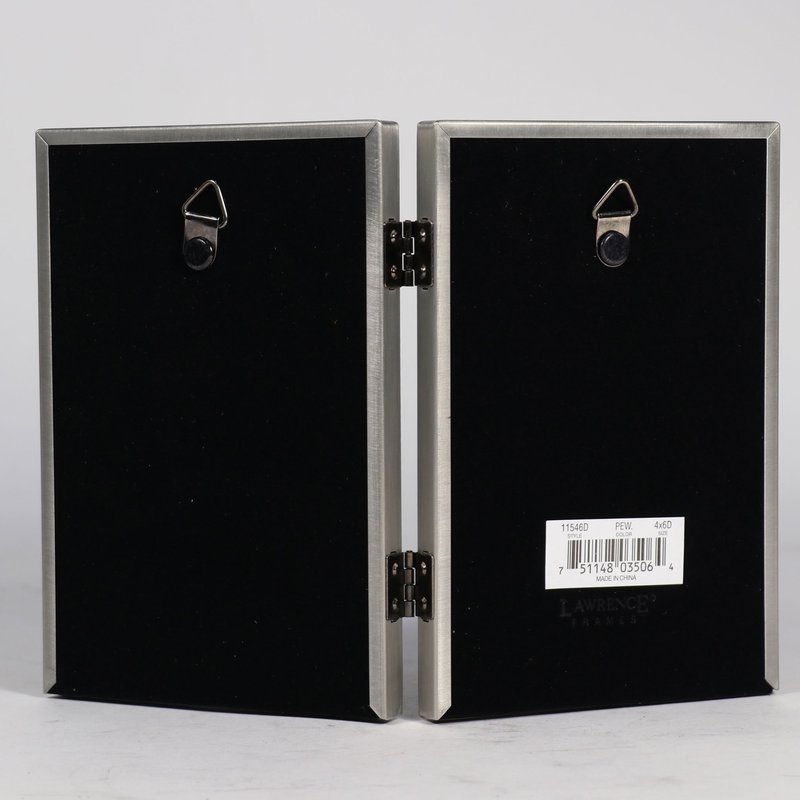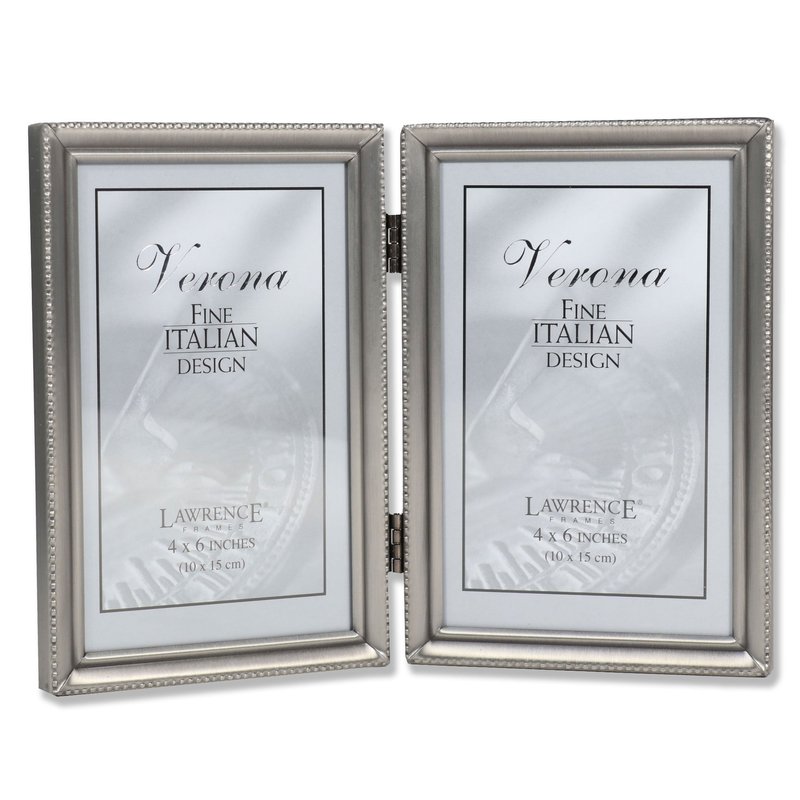 Lawrence 11546D 4-Inch x 6-Inch Metal Pewter Hinged Double Picture Frame