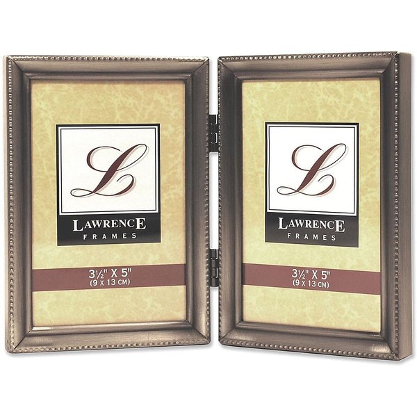 Lawrence Frames 11535D Antique Pewter Hinged Double 3x5 Picture Frame - Beaded Edge Design
