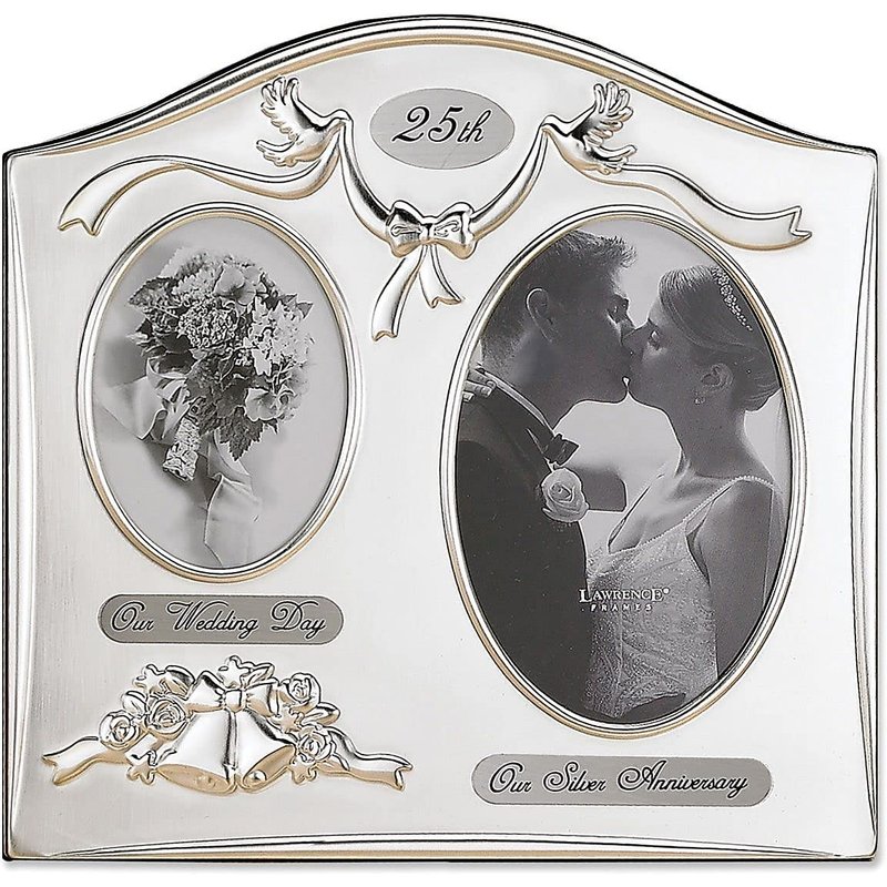 Lawrence Frames 590043 Satin Silver & Brass Plated 2 Opening Picture Frame - 25th Anniversary Design