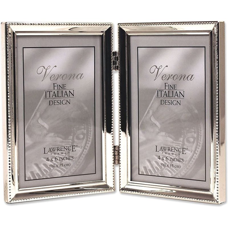 Lawrence Frames Verona Collection 4" x 6" Metal Silver Hinged Double Picture Frame with Beads (11646D)