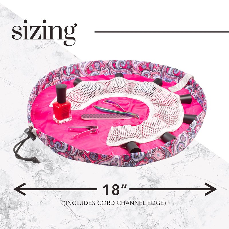 Lay-n-Go Nail Spa Drawstring Cosmetic Acrylic Nail Polish Holder, Organizer & Toiletry Bag for Travel, and Daily Use with a Durable Patented Design, 18 inch, Pretty In Paisley (Pink Pattern)