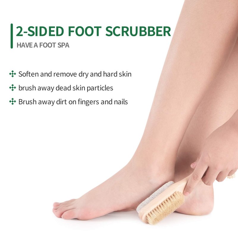 - 【FEATURES OF THE FOOT FILE SCURBBER】PUMICE STONE : Pumice Stone with numerous and random small holes can help to rejuvenate and clean the skin of the feet and heels, as well as removing calluses, corns or rough and dry skin. NATURAL BRISTLE: The other side of natural bristle of the Foot File Scrubber can help to get rid of the dirt on the skin of foot figures and heels. WOODEN HANDLE: The wooden handle of the Foot File Scrubber helps you to handle it easily and hold by one hand.