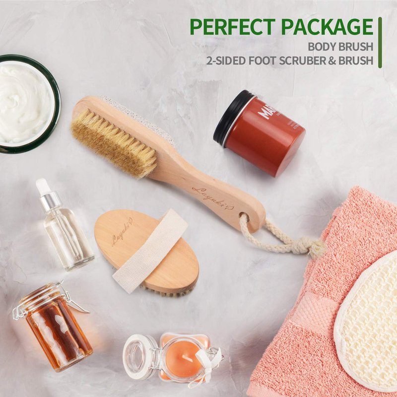 LAYUKI Body Brush for Dry or Wet Brushing and 2-Sided Foot File Scrubber Set, Body Scrubber for Bath or Shower, Exfoliating Skin, Cellulite Treatment, Foot File Scrubber with Pumice Stone