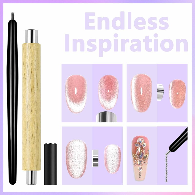 - Strong Magnet: Laza nail magnet kit equips with 10mm strong cylinder magnet for creating stunning cat eye effect. With strong magnetic force, this cat eye magnet for nails works quickly with all kinds of magnetic nail polish/ velvet gel nail polish/ cat eye nail powder, and makes your nail art design buildable with either thin or thick gel consistency.