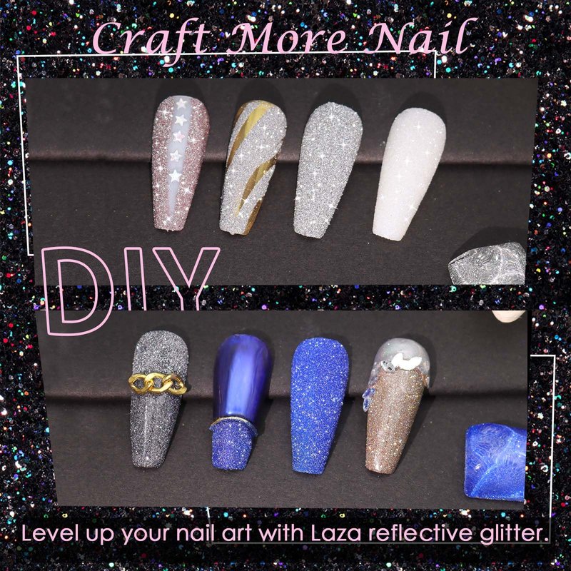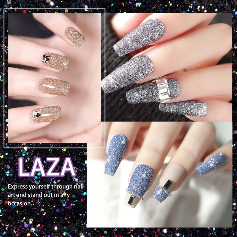 Laza crystal glitter are made of solid high-reflective material and are all shaped into micro triangle, so that they are more sparkling than common nail rhinestones. All pixie crystals for nails are evenly ginned to fine diamond glitter, hence it can be attached to nails seamlessly without popping up.