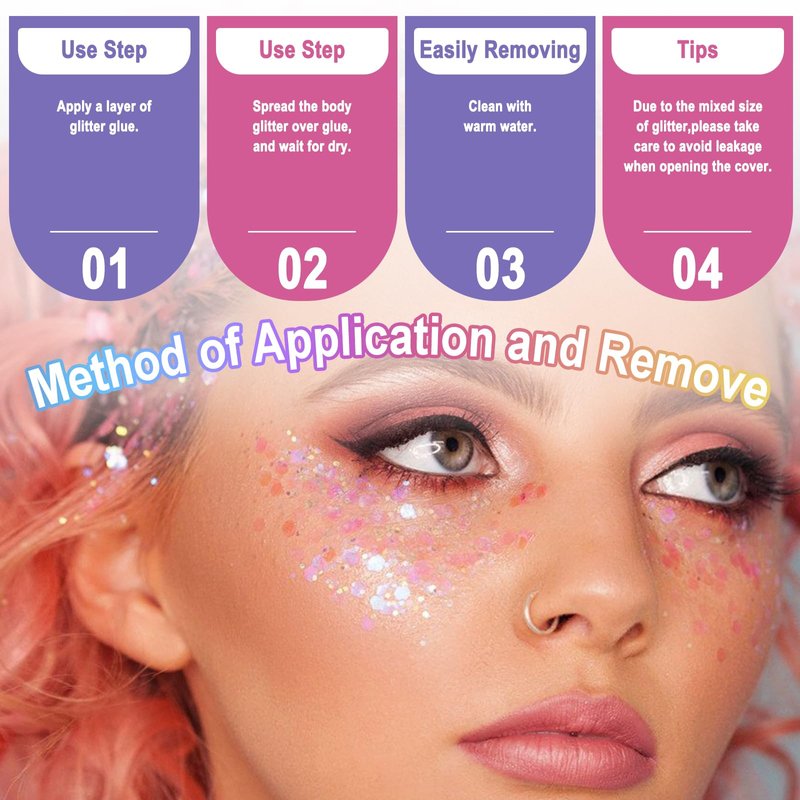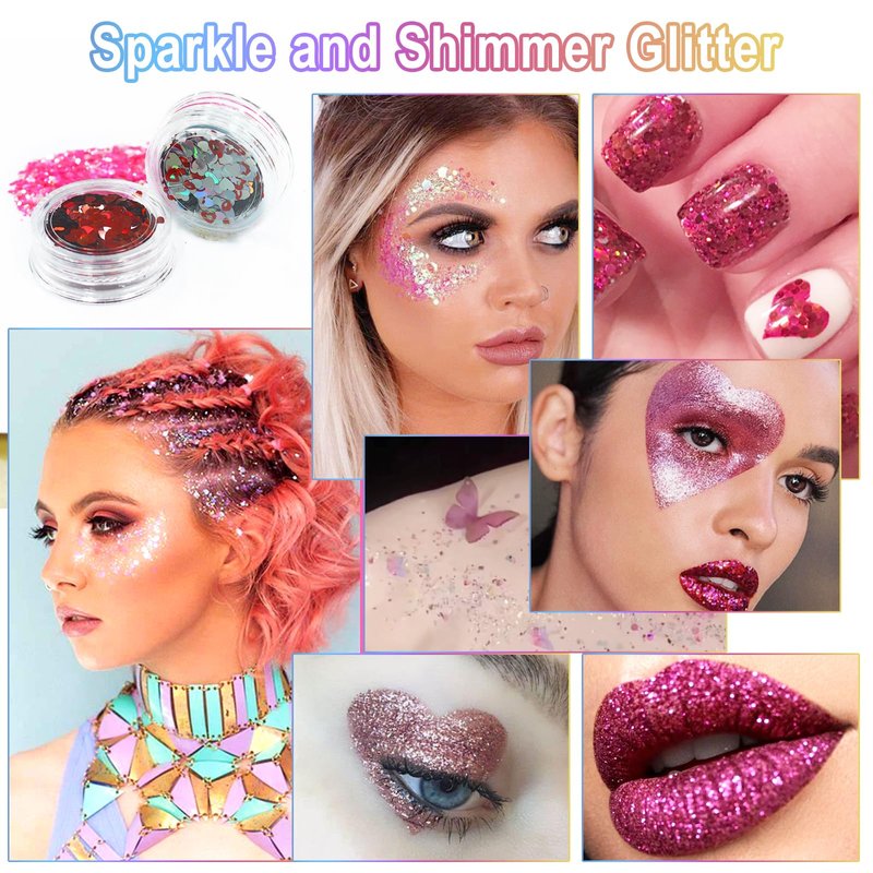 - Widely application: The cosmetic chunky body glitter are great for your face paint, rave makeup, body makeup, euphoria outfit and so on. It also applies to nail art and resin crafts. Great rave accessories for coachella essentials, euphoria party, carnival costumes, disco accessories, music festival outfits, concert essentials, and so on. It is a very suitable holiday gift for women, girls, cheerleaders.