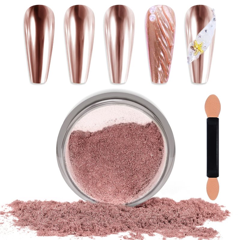 - Wide Application: The rose gold nail chrome powder is suitable to be applied on UV gel nails, acrylic extension and natural nails. It can also perfectly match with chameleon flakes, nail charms, bubble effect, water ripple pattern, French manicure, 3D shell nails and etc. Just unleash your creativity.