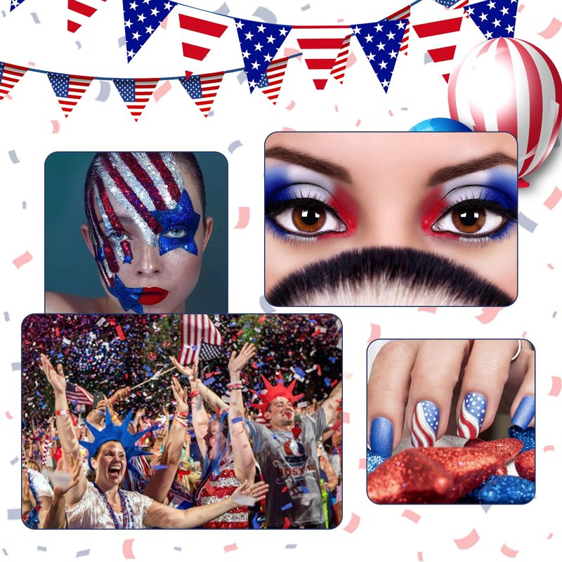 - Wide Application: This glitter set is perfect for red, white and blue nails, such as 4th of July nail art. These red, white and blue glitter can also be apply to other DIY 4th of July decoration and resin crafts. Perfect nail art accessories for Independence Day Parade, the USA patriotic events, parties, carnivals,stages, concerts, and so on.