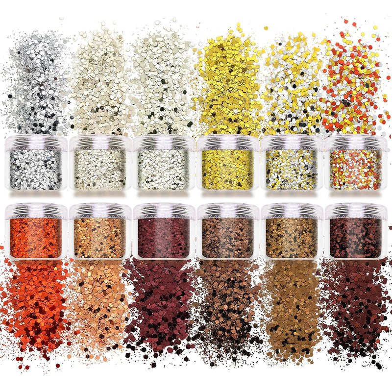 Laza Nail Glitter - 12 Color Acrylic Art Glitters, Copper Iridescent Flakes for Gel Polish, Face, Eyes - 120g