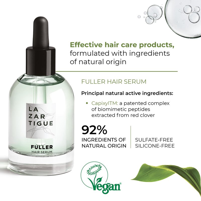 Lazartigue Fuller Hair Serum, Thickening, Strengthening, Densifying Scalp Treatment for Thinning Hair, Promotes Growth and Volume for Fuller, Healthier Appearance, Vegan, Sulfate/Silicone Free, 1.7 Oz
