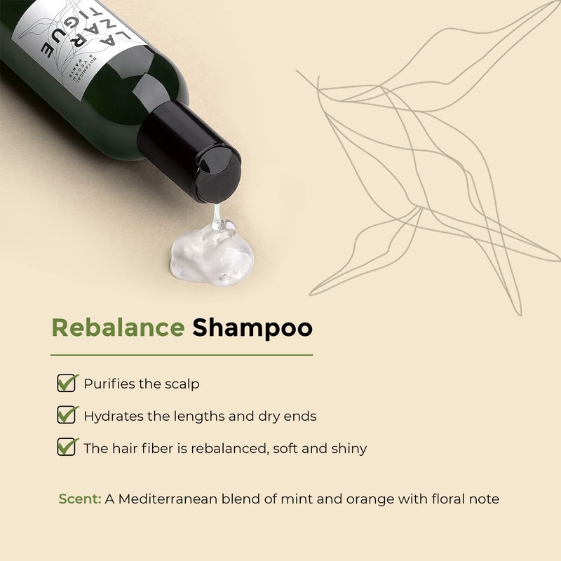 - Organic Ingredients - Lazartigue Rebalance Shampoo is 95% natural and vegan, free of sulfates and silicones, and contains rice vinegar and spirulina which cleanses the scalp while hydrating the lengths and dry ends of your hair