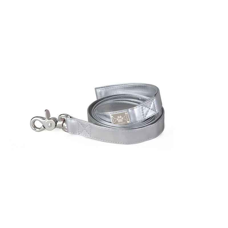 LazyBonezz Classic Durable Silver Faux Leather Dog Leash with Metal Clasp, Silver Medium