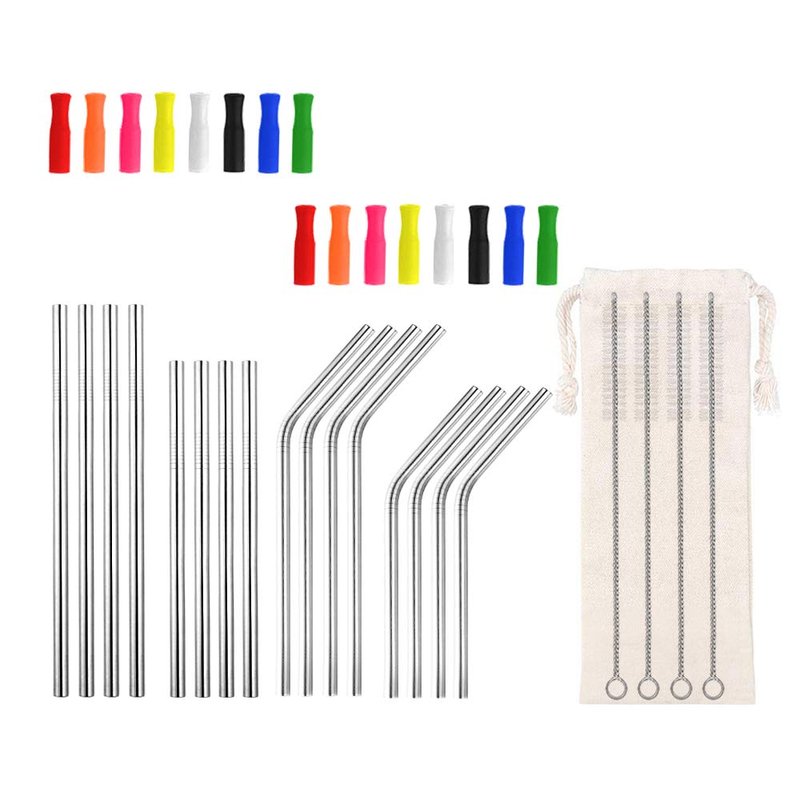 - 【SIZE FOR SHORT GLASSES/CUPS】Our short metal straw set includes: 4pcs straight and 4pcs bend straws at 5.5 inch long, 4pcs straight and 4pcs bent straws at 6.5 inch long(length from tip to tip, 6mm outside diameter, NOT FOR boba/thick drinks), 16pcs silicone tips, 4pcs cleaning brushes and a carrying bag.