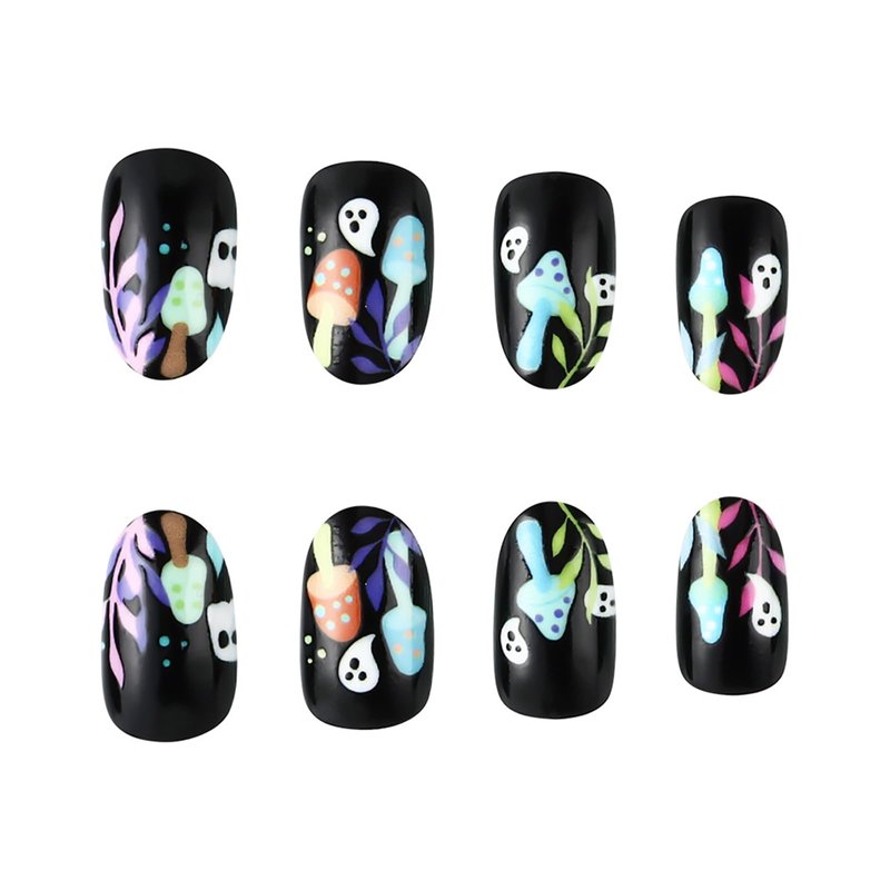 LBPEPAMZ Halloween Extra Short Press on Nails, Black Gothic Matte Mushroom Devil Glue on Gel Nails,Reusable Glossy Stick on Nails Squoval Artificial Nails for Women Manicure Nail Decor 24 Pcs