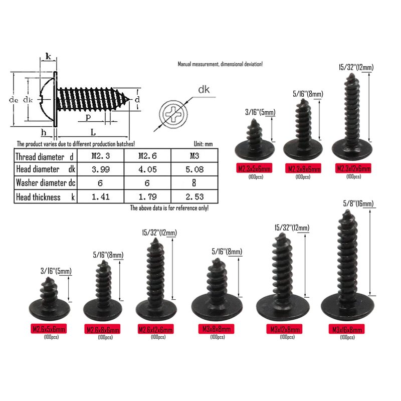 - 3.Size:M2.3x5(8/12)x6mm,M2.6x5(8/12)x6mm,M3x8(12/16)x8mm.