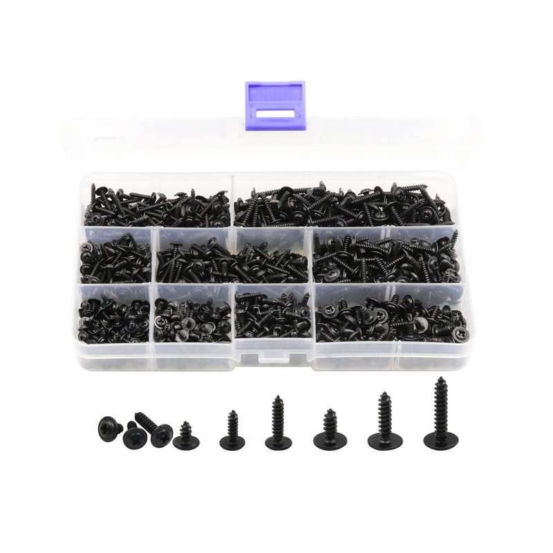 LBY 900pcs M2.3 M2.6 M3 Truss Head Self Tapping Screws, Wafer Head Screws, Pan Head with Washer Screw 9 Sizes Self Tapping Screws Assortment Kit, Carbon Steel (Blacking)