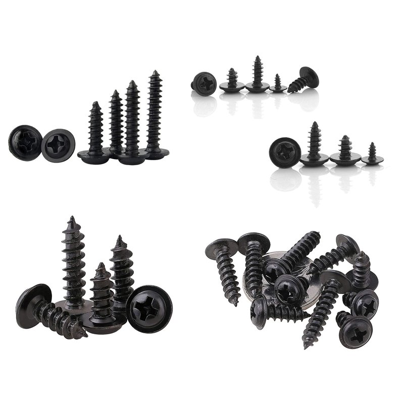 - Washer head self- tapping screws,made of carbon steel,surface blacking treatment, you can use it for a long time.