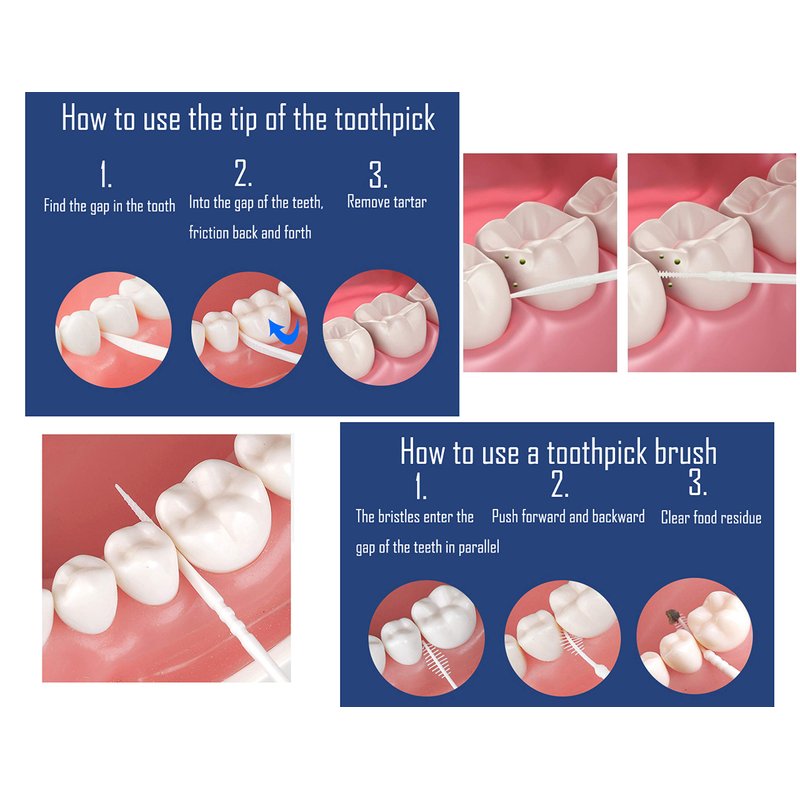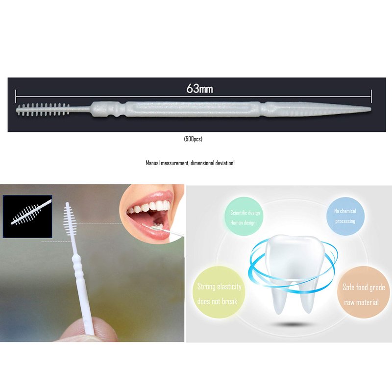 - One end is a flat rhombus pointed shape, which is convenient for removing impurities in the teeth. One end is a brush shape to facilitate cleaning of oral hygiene.