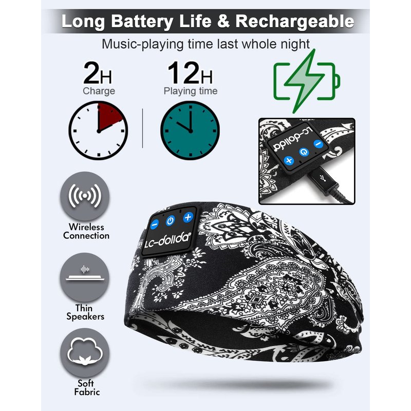 LC-dolida bluetooth Sport Headband with built in bluetooth and speakers, allows you to listen music and answer callings freely, no hassle to wearing additional earphones, In addition, this sport sleep headband protect you from being disturbed by your mess hair and sweat. Enjoy a more convenient life style.