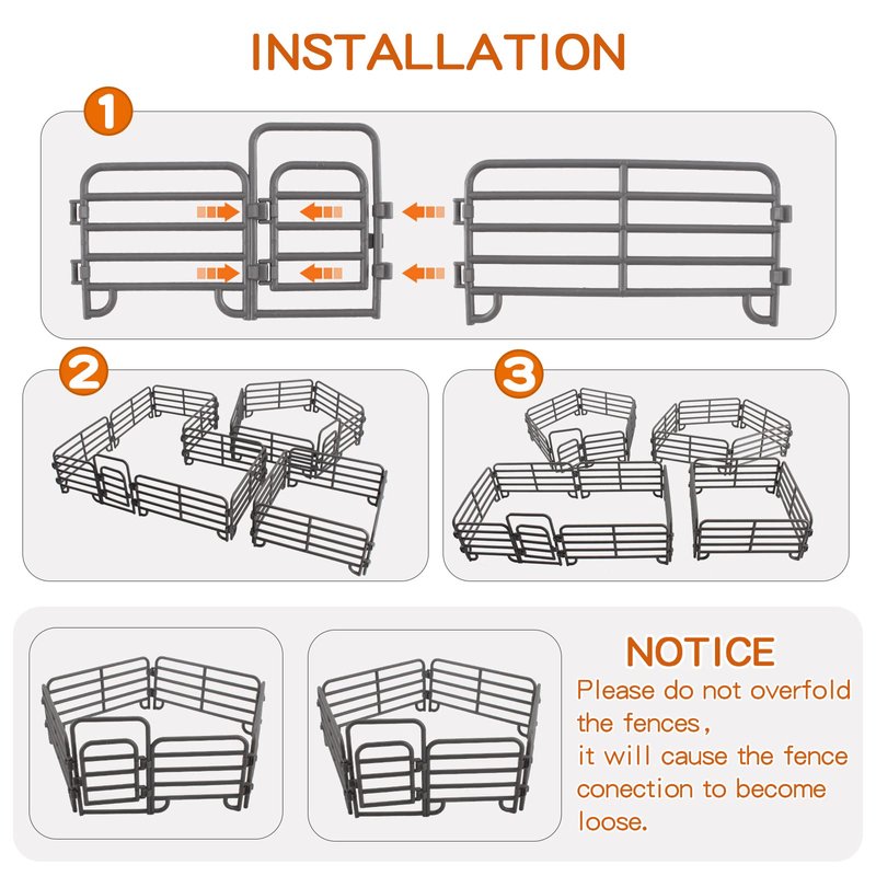 - EARLY EDUCATIONAL GIFT - Can install these corrals by themselves and have more fun with their small farm building.It will help improve children's concentration and outsight, develop and train their mind.