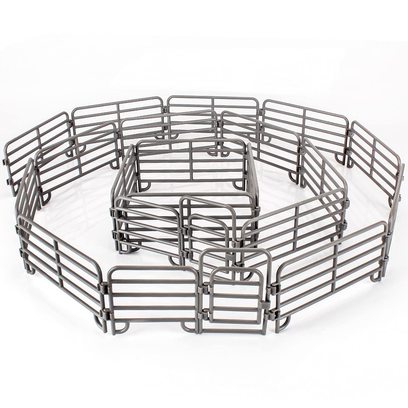 - 20PCS FARM CORRAL FENCE SET – Included 20 PCS plastics wooden corral fences. The fence size is 5.6" * 4.6" * 0.5" (L*W*H) .