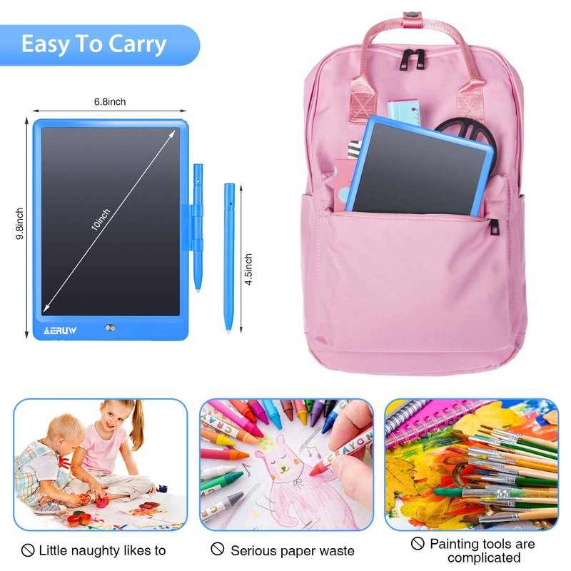 - ✍ Environmental & Friendly - A drawing pad for kids is like an endless sheet of paper! This electronic writing pad can better protect the environment, save papers, eliminate the need for pens, erasers, one LCD writing pad can be written more than 100,000 times, it can save 100,000 pieces of papers.