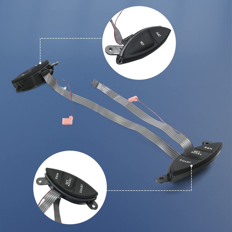 - ✦ 【Package includes】The kit includes left and right steering wheel controls. (right and left steering wheel cruise control buttons, all necessary harness, terminals and o-ring connector)