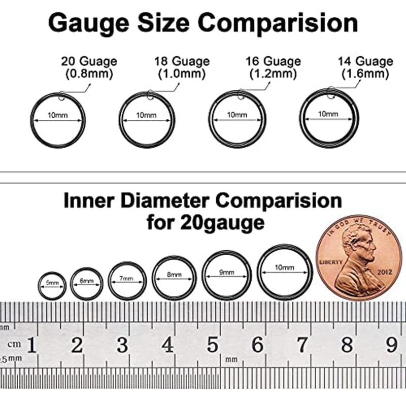 - SIZE TIPS: The bigger gauge of the hoop, the thinner the nose ring, such as 20G→0.8mm, 18G→1.0mm, 16G→1.2mm, 14G→1.6mm. The thinner the nose ring, the easier it is to pass through the piercing. The diameter of the hoop is important for achieving the desired look and fit. Measure your piercing or consult with a professional piercer to determine the appropriate diameter.